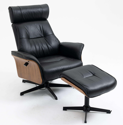 เก้าอี้หนังหมุนได้ทันสมัยเก้าอี้เอนเก็บออตโตมันฐานไม้ผู้เอนกายกับออตโตมัน