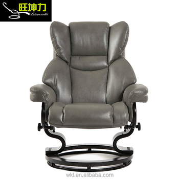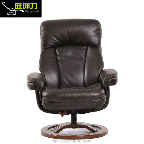 Silla reclinable giratoria fácil con base de madera doblada de cuero PU WKL con otomana
